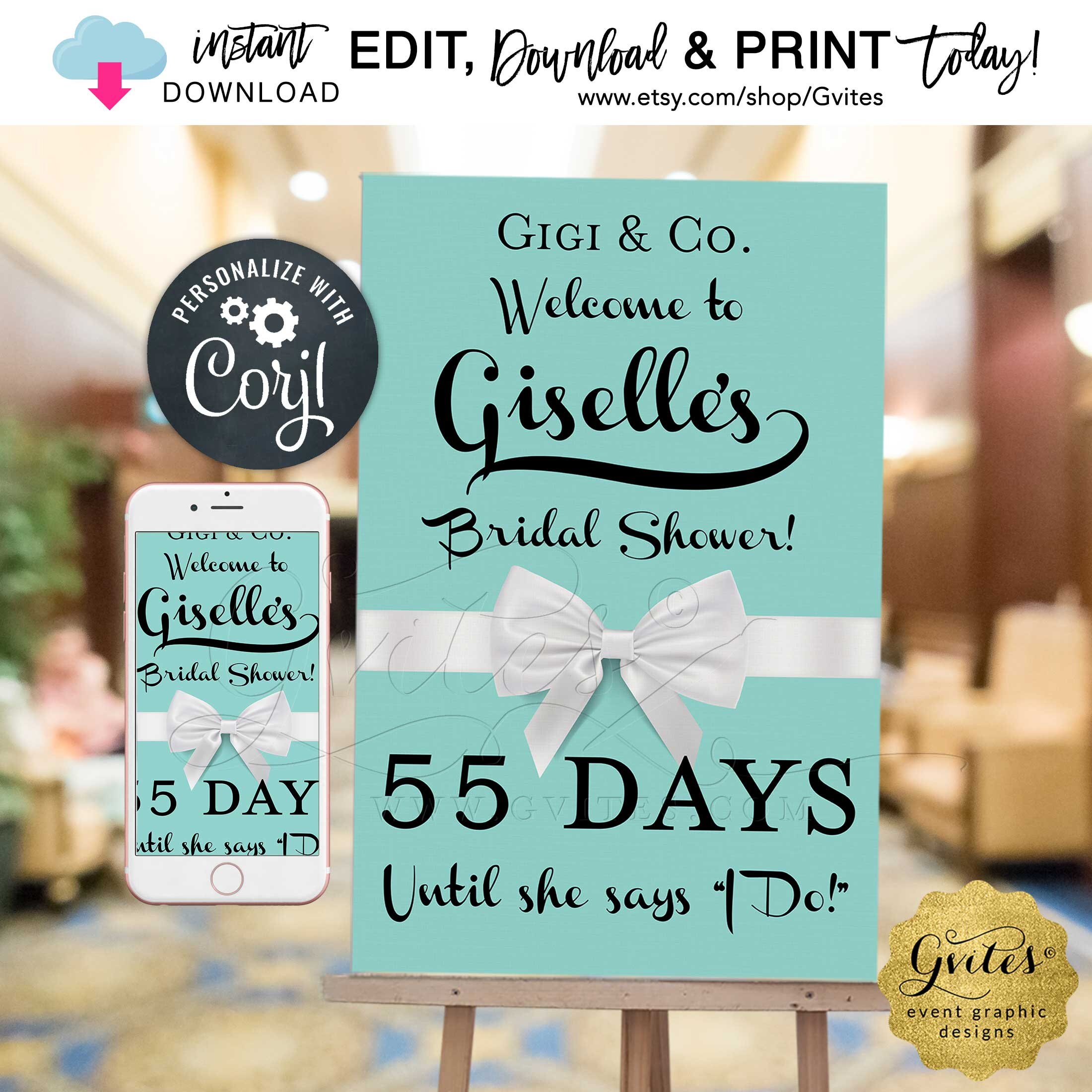 Countdown Welcome Bridal Shower Sign Bride Co Printable Etsy Ireland